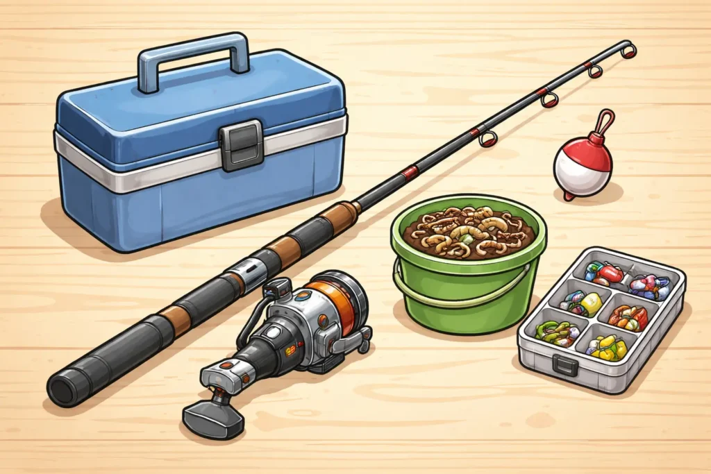 낚시를 처음 시작할 때 꼭 필요한 기본 장비는 무엇인가요?